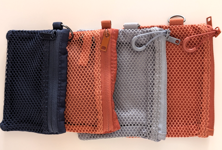 普段は持ち歩くキーケースとして、鍵に付属のストラップをつけて紛失防止対策もバッチリ。もう1つは持ち歩きの常備品用に。リップ、手鏡、目薬等の細々としたアイテムも仕分けを使ってきれいに収納。旅行時は財布として活躍。日本円を入れる財布と外貨用の財布にそれぞれ分けて使用。ポイントは色を変えての使い分けです。視認性が高くパッと取り出せるのは、カバンの中を探し回る時間が削減できるのでオススメです。