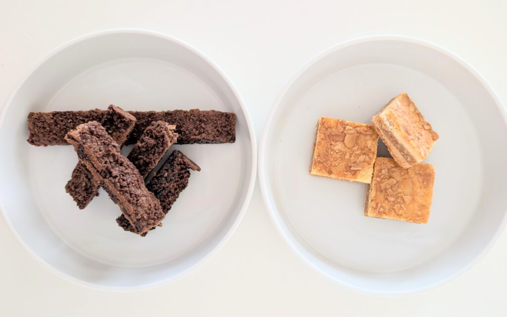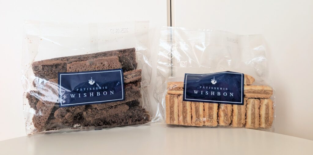 購入できた切り落としは、『プレーン』と『ショコラ』の2種類。内容量はどちらも270g。気になるお値段は、通常の箱入り商品『横濱レンガ通り(6個入)』で675円(税込)なのに対し、驚きの432円(税込)!たっぷり入っており、袋を手にした瞬間、その重みから“お得感”が伝わってきます。切り落としは、細長いもの、四角いもの、厚みのあるものなど、大きさも形もバラバラ。毎回どんな形が手に入るかも、切り落としならではの楽しみです。