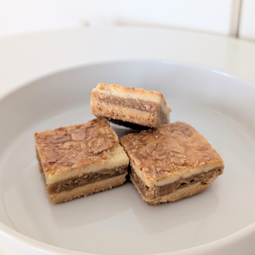 今回購入した『プレーン』は、正規品と変わらないのでは?と思うような四角い形が袋にぎっしり。食べてみると、優しい口当たりで、キャラメルの甘い風味が広がります。正規品に比べると生地の割合が多めになっていることもあり、より香ばしさを感じられるのも切り落としならでは。時にはキャラメルがたっぷり絡んだ部分に出会えたり、アーモンドの風味が濃厚に残っているかけらを見つけたりと、まるで“宝探し”のように、一袋の中で異なる味わいを堪能できました。