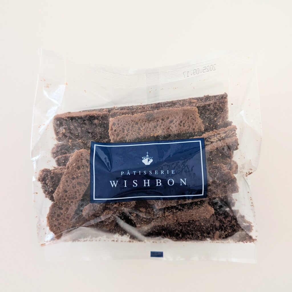 一方の『ショコラ』は、まさに切り落としと言った、細長い形が沢山入っています。食べてみると、『プレーン』よりも噛み応えがあり、ビター感が強い印象。甘さが控えめで、大人向けのほろ苦さが特長。個人的には、こちらの方が好みの味です。