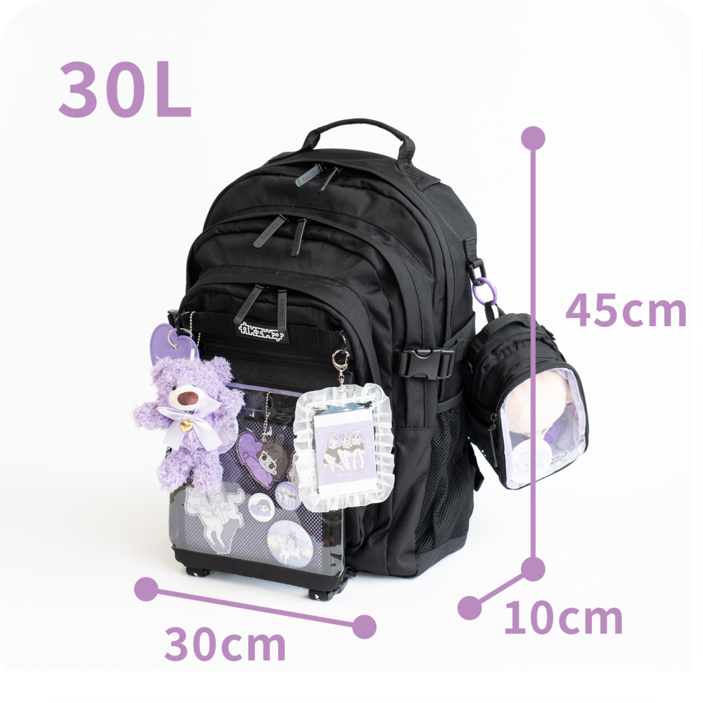 容量はたっぷり30L。教科書やノートなどを収納できるだけでなく、ライブの必須アイテムであるうちわやペンライトも入れやすく、通学以外でも大活躍です。