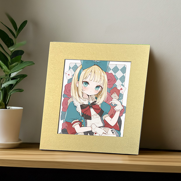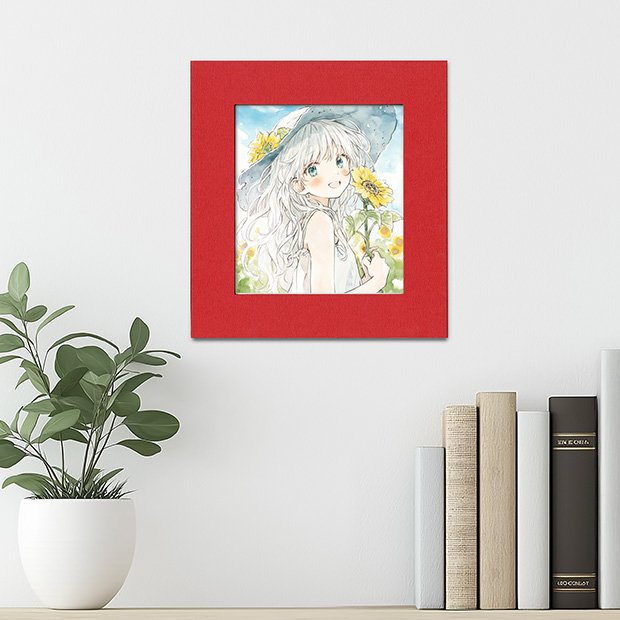 ミニ色紙は、アニメやキャラクターグッズの定番。イベントでの限定配布グッズや、作家による手描きイラスト、サインなど、推し活グッズとして欠かせないものです。このフレームは、窓寸法を広く設計。イラストやサイン、背景など描かれている全て余すことなく鑑賞できるサイズとなっています。