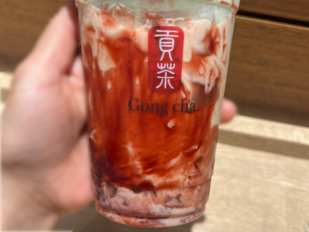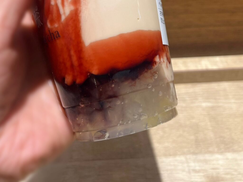 さらに全体が混ざり合うと、ほろ苦さとクリーミーさが美味しいミルクティーのさっぱりしたコクが上品な大人の味わいを引き出してくれます。甘さは普通にしましたが、りんごとクランベリーの甘さ、ミルクティーの苦みのバランスがちょうどよかったです。氷少なめにしたのも大正解。ゼリーは飲みやすく、ひんやりした喉越しを感じながら、ごくごく飲むことができました。