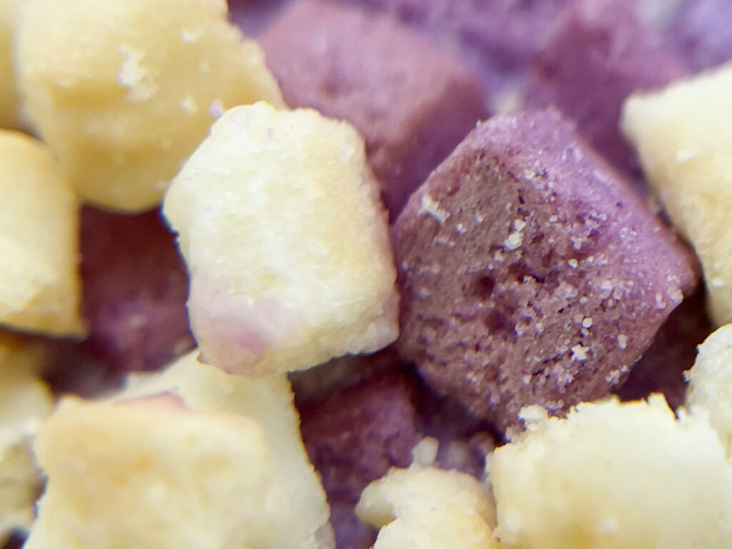 開けると、中にはたっぷりのバタークッキーと紫いもクッキーが!ゴロゴロとした大きさで、見るからにザクっとした食感が楽しめそう。