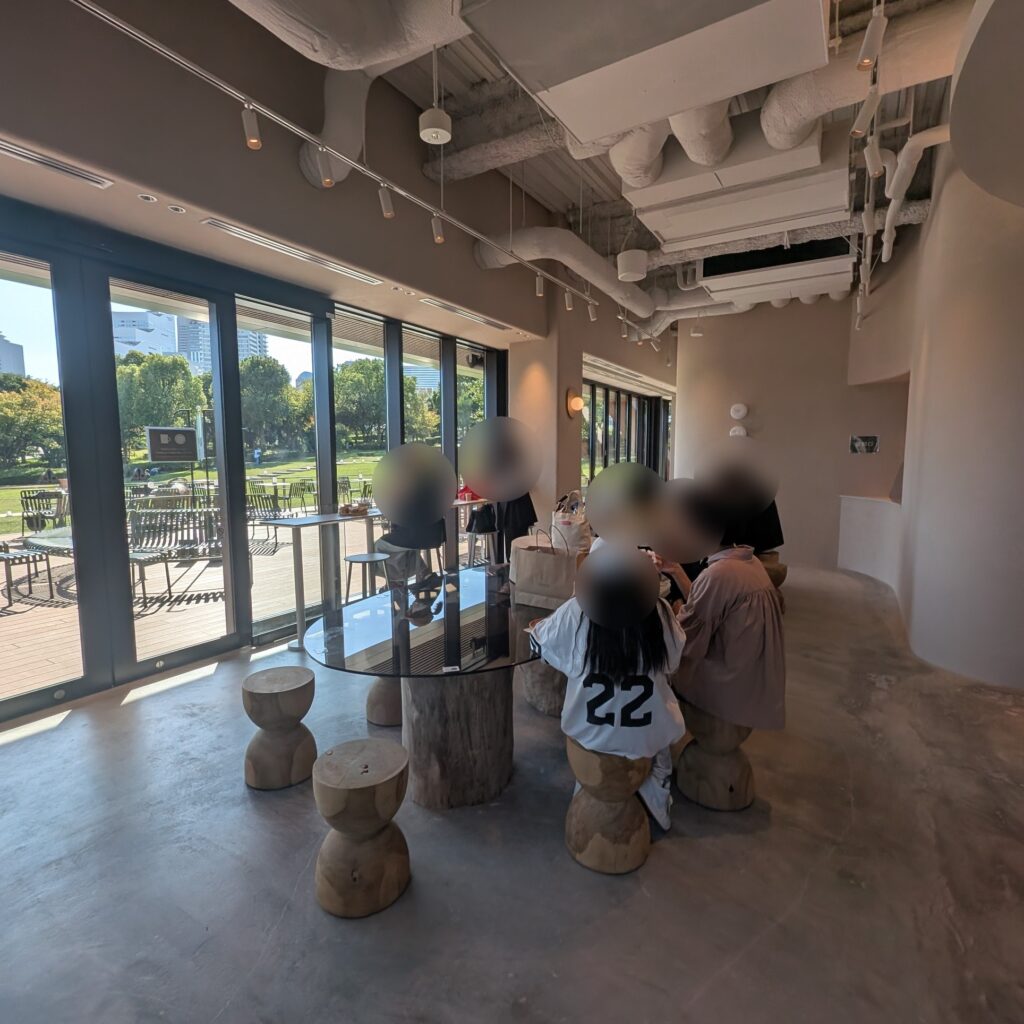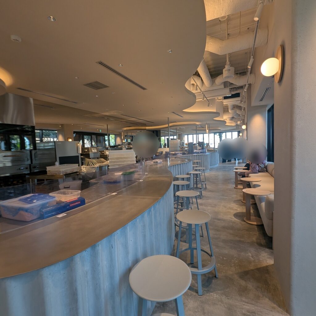 広々としたテラス席や、店内のイートインスペースもあります。テイクアウトして臨港パークで海風を感じながら、のんびり食べるのもおすすめ。