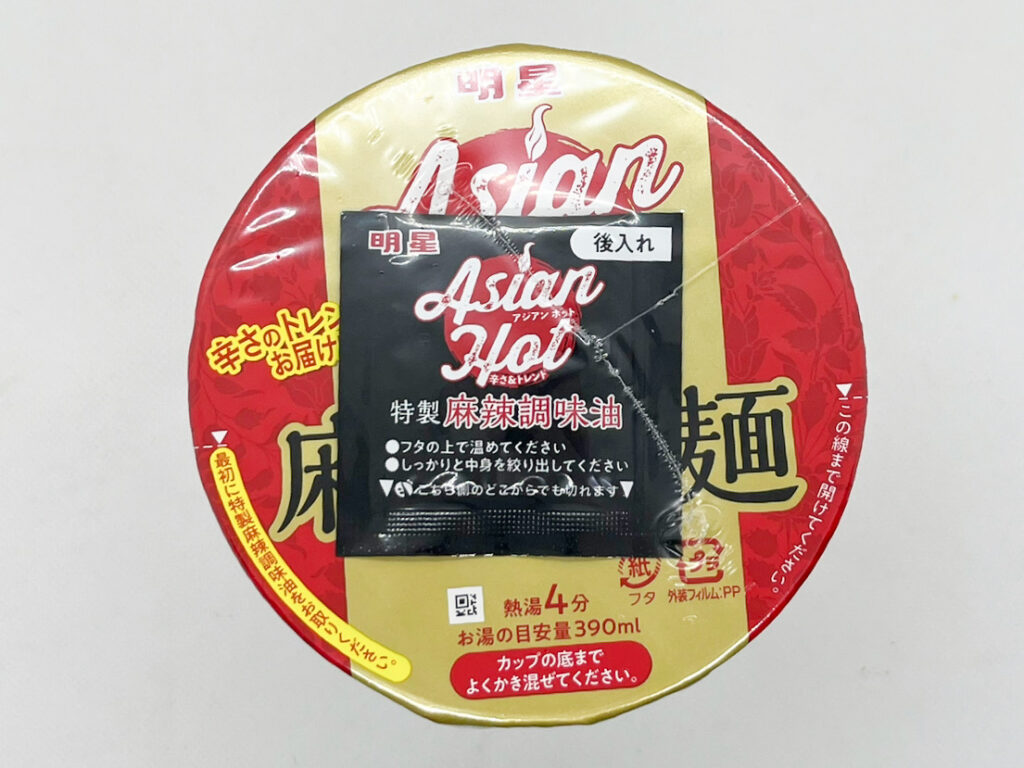 こちらがゲットしてきた「明星 Asian Hot 麻辣湯麺」。近所のスーパーマーケットで税込246円で購入しました。