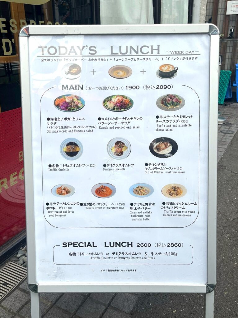 選んだのは『名物!トリュフオムレツ』。通常のランチは税込2,090円ですが、このメニューはプラス200円で注文することができます。