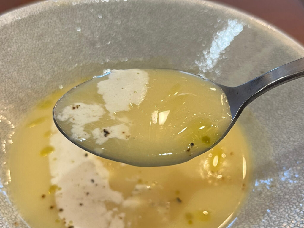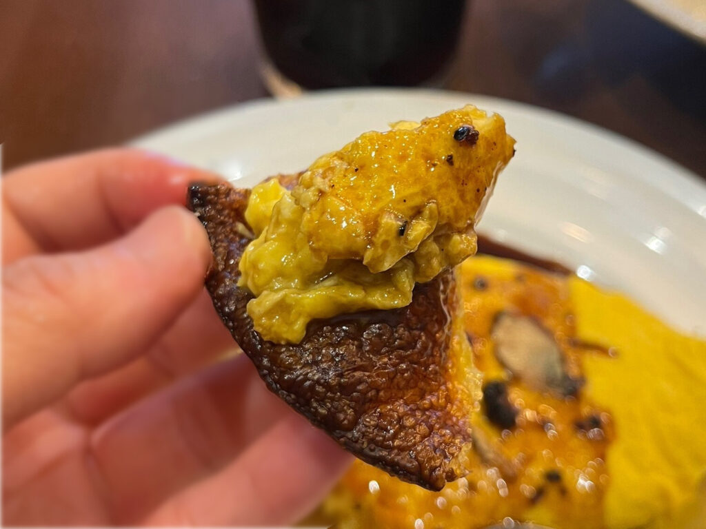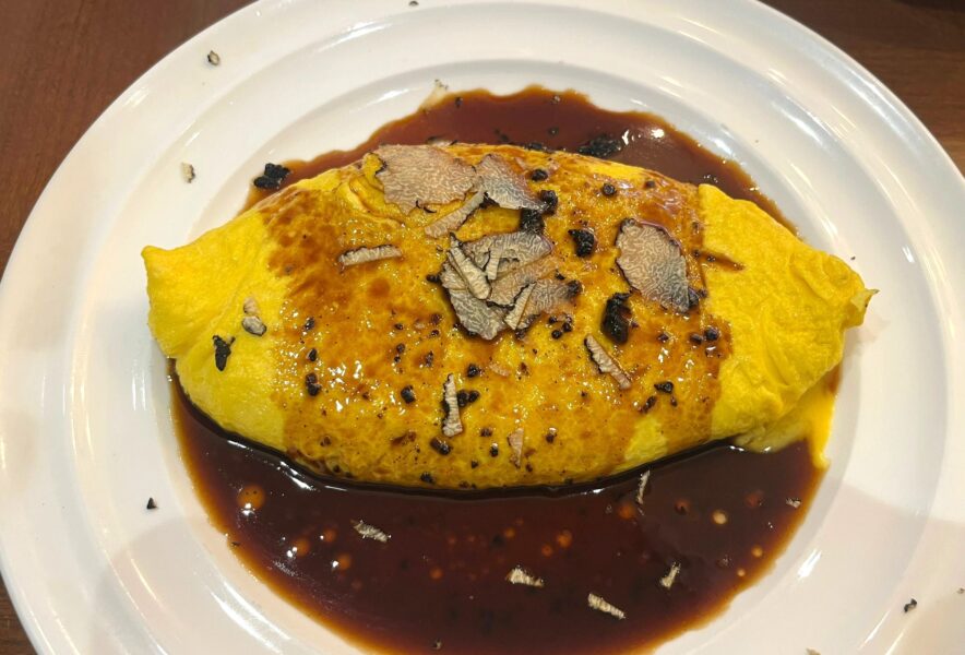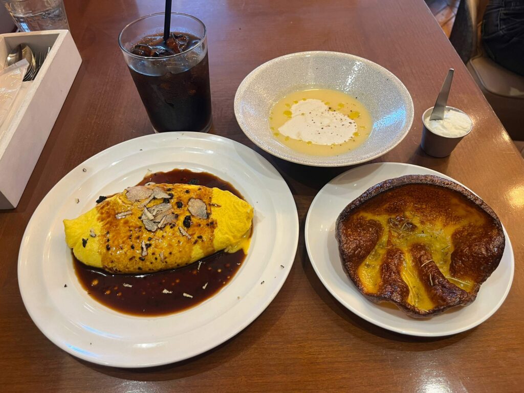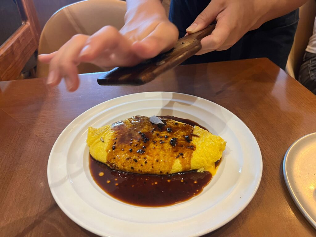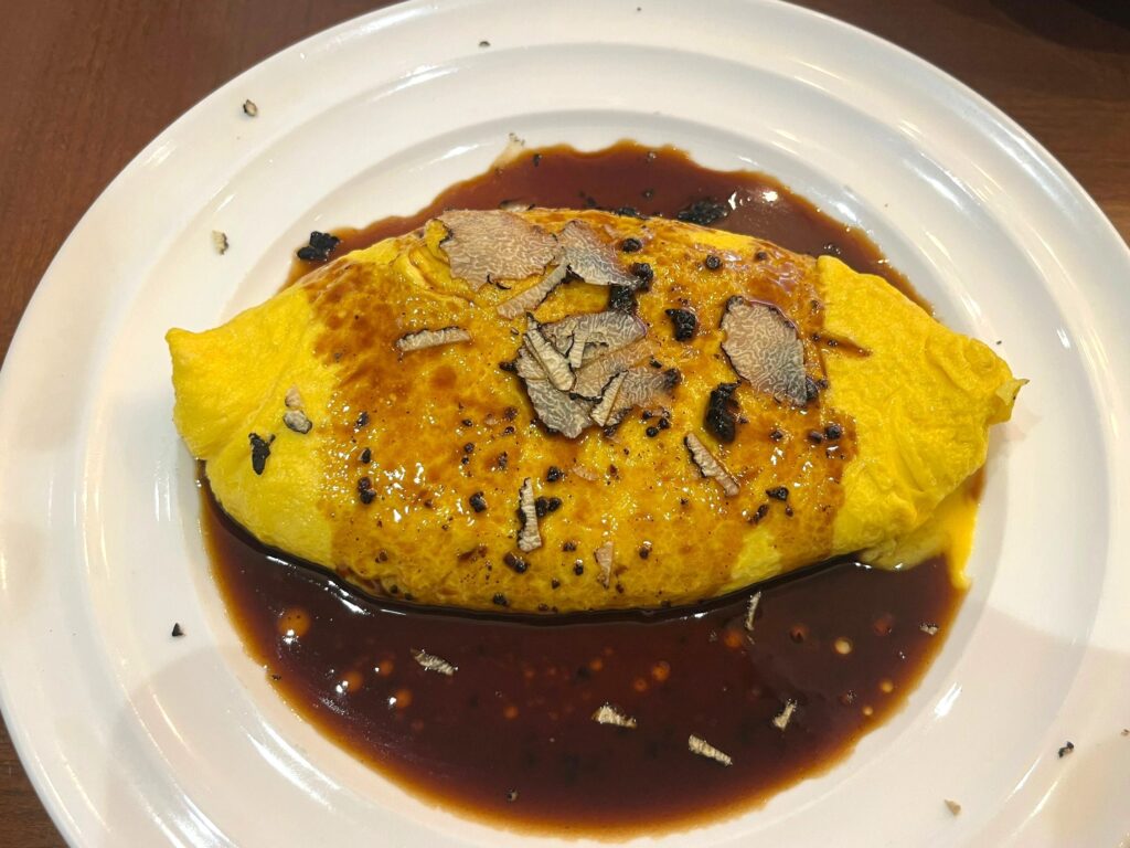 なんとこのオムレツ、食べる直前に店員さんが目の前でトリュフをかけてくれるんです!パフォーマンス中はずっとトリュフのいい香りが漂って、食欲が刺激されます。