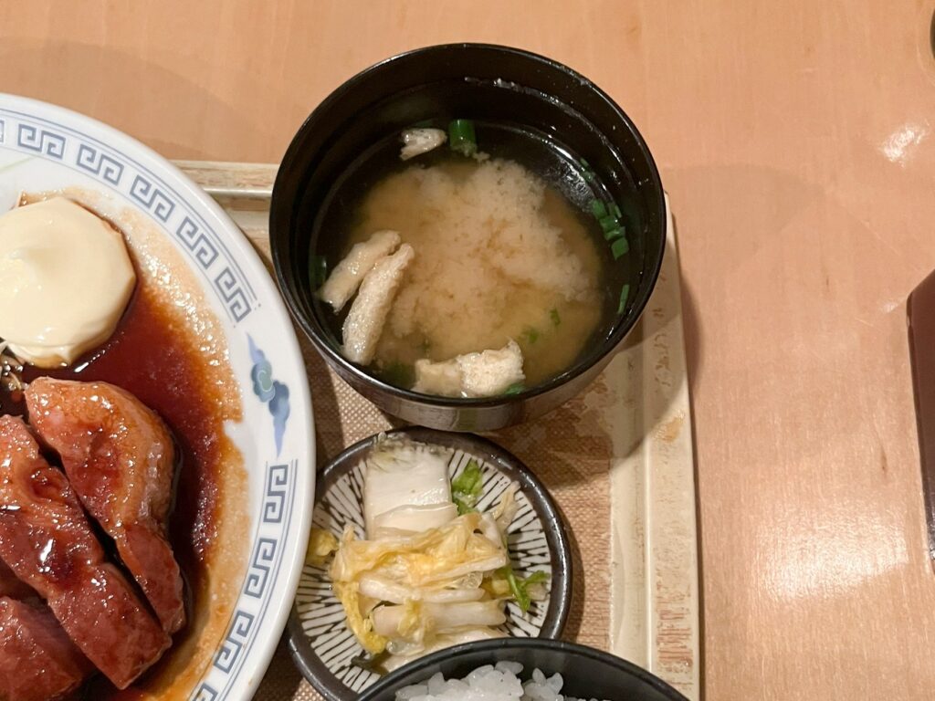 お味噌汁もお漬物も、口の中が豚肉でこってりした時の箸休めにピッタリで、大満足の定食でした。