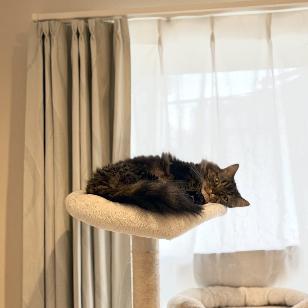 「完成後興味を示してくれるか観察するつもりでしたが、観察する間もなく入っていったので写真に収めました」とその姿に驚きながらも、パシャリ。尻尾の愛らしさも相まって記念写真を撮らずにはいられなかったのだとか。SNSでも、このこたつを買ったという投稿をよく目にしますが、警戒して入らない子も少なくありません。そんな中、アーサーくんは「これは居心地がいいに違いない!」とピンときたのでしょうね(笑)。今ではもう、すっかりお気に入りの場所になっています。