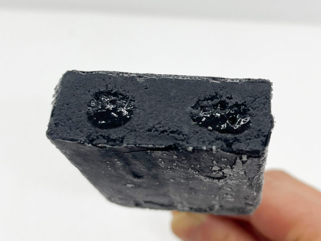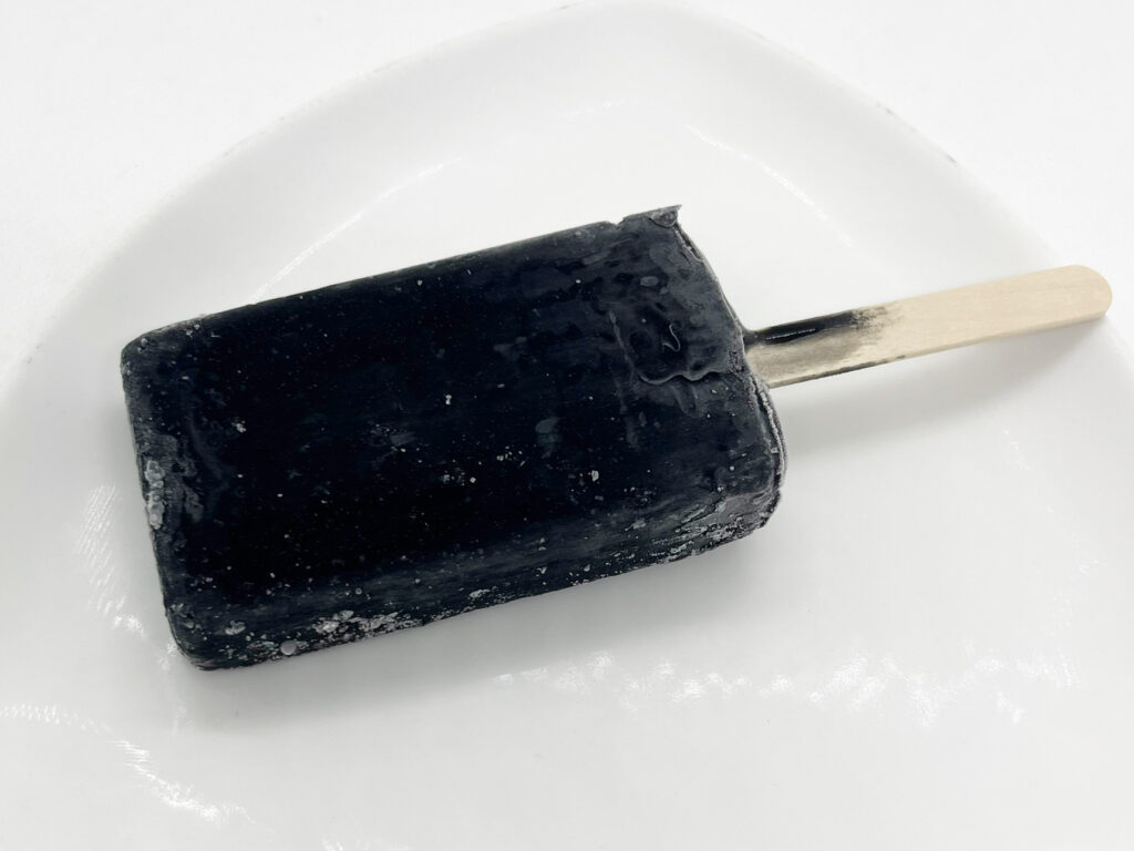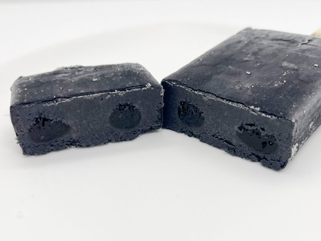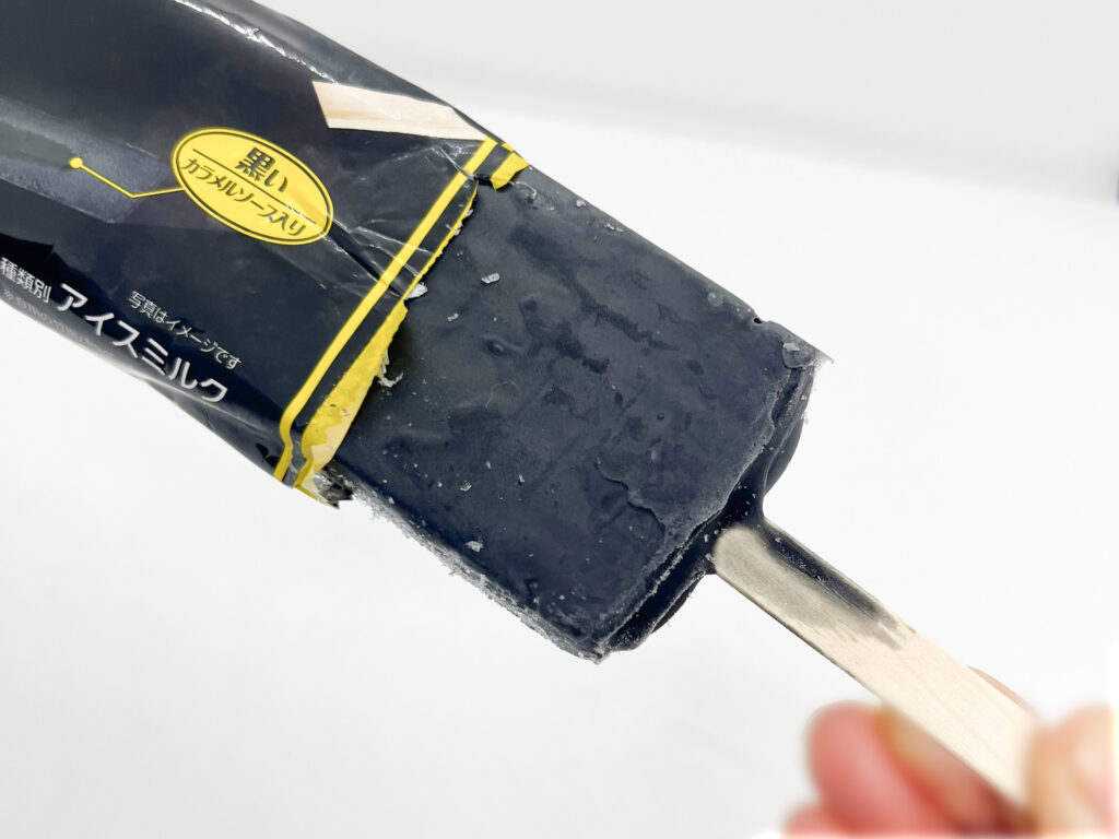 全体を見ても、ただただ黒いアイスバーといった様相。最近は、見た目から美味しそうなアイスもたくさん出ていますが、こんなにシンプルで真っ黒なものは珍しいのではないでしょうか。