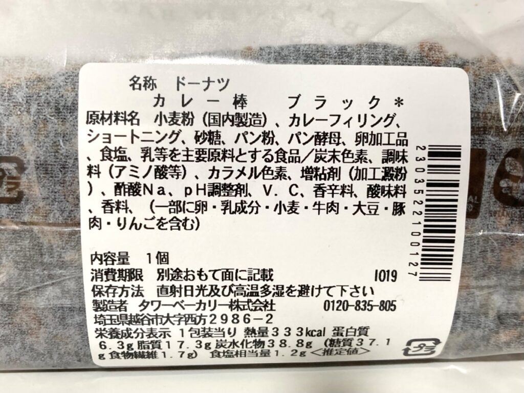 最後は「カレー棒 ブラック」(税込192円)。1個当たりの熱量333kcalです。