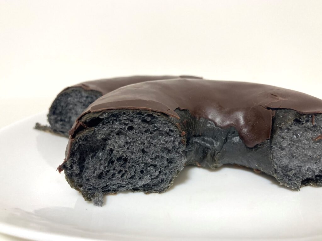 断面はこんな感じ。ココアドーナツなどで黒い生地は見慣れていますが、切ると違和感を感じる程の黒さに、思わず笑ってしまいました。
