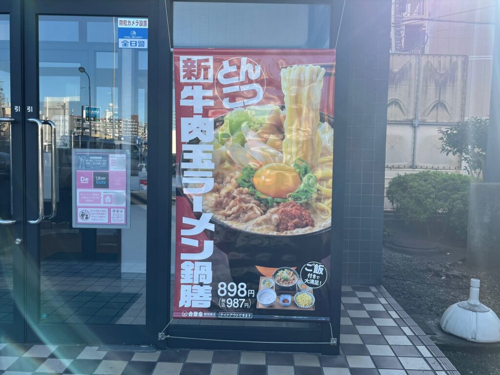 店頭には大きなポスターが飾られています。“ラーメン!?”とついつい気になっちゃいますね。