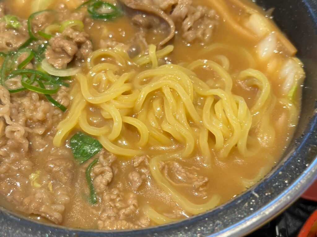 麺を鍋に入れて少し煮込んでみましたが、スープがよく浸み込み、程よく柔らかくなった麺の食感もよく、どちらも甲乙つけがたい美味しさでした。