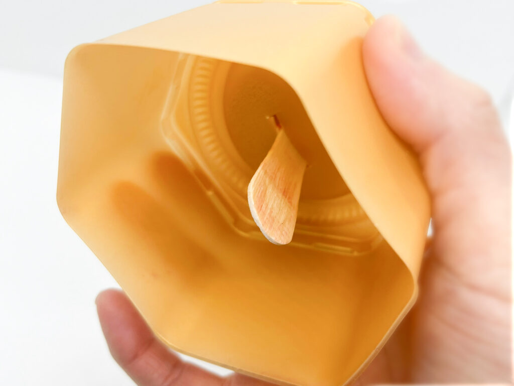 ではスプーンですくってみましょう。マンゴーと同じく、パリっとしたコーティングがされています。