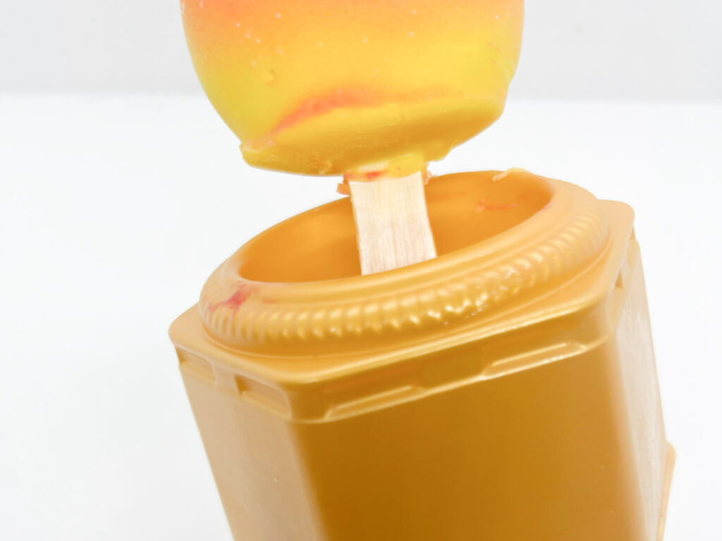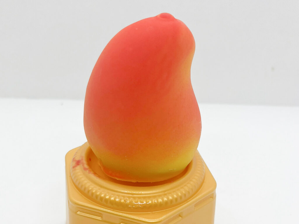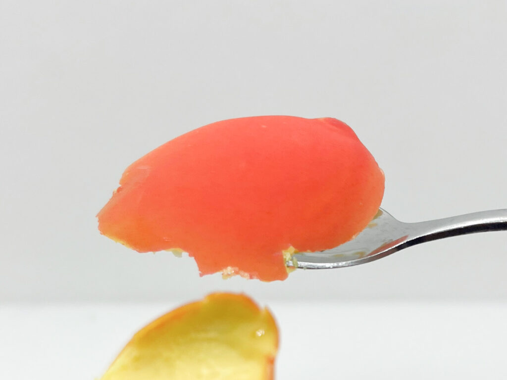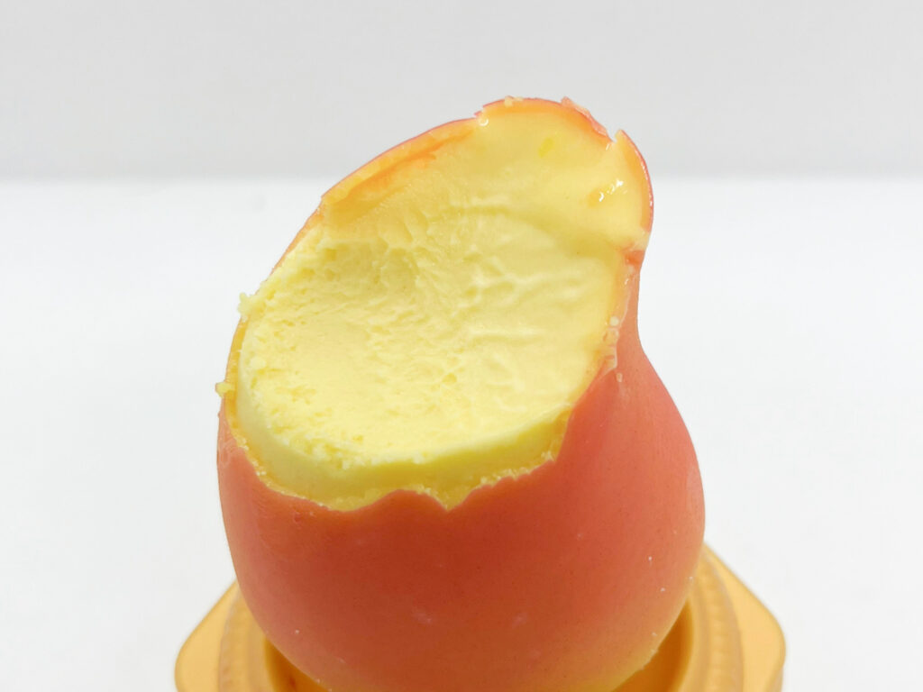 ちゃんと皮の部分が鮮やかなオレンジから黄色へグラデーションになっていて、見た目の再現度が高い!熟したマンゴーのようなビジュアルが食欲をそそります。
