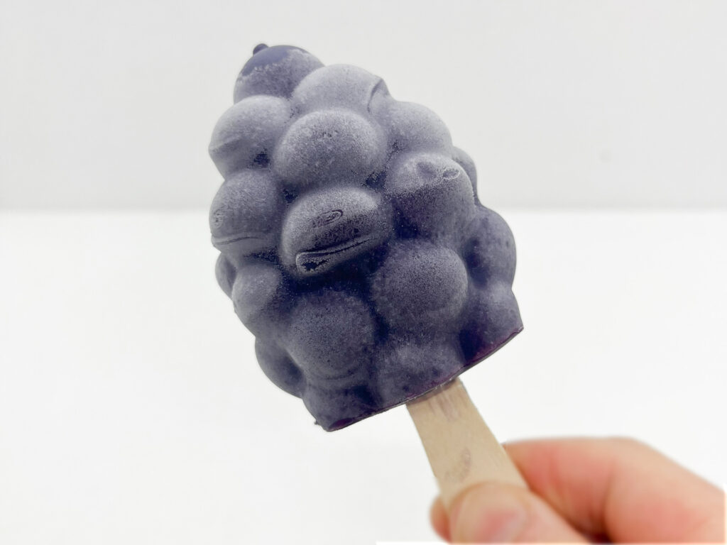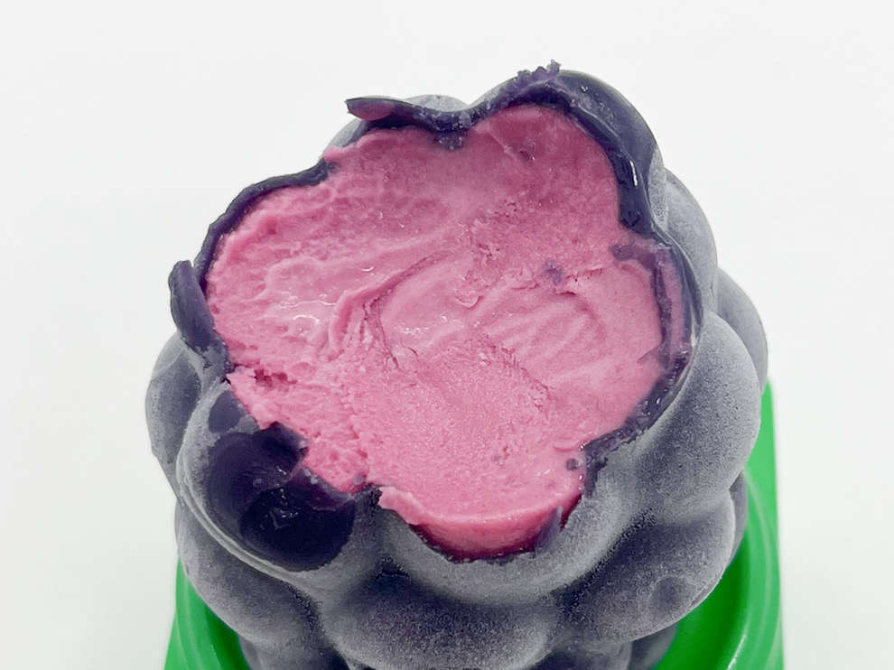 こちらのブドウは一粒一粒の実がリアル。本当にひと房そのままアイスになったようなビジュアルに驚きです。