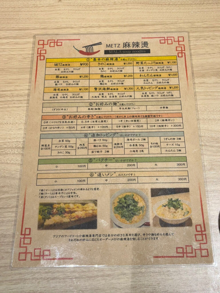 メニューを見てみると、すでにベースの麻辣湯が出来上がっています。