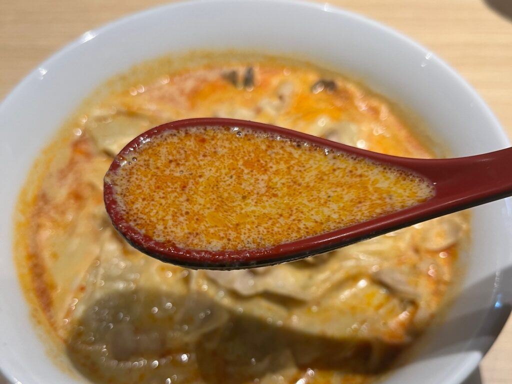 このスープがクリーミーなマイルドさがあって絶品!きちんと辛さもあって、奥深いコクを生んでいます。思わずごくごく飲んじゃいそう。