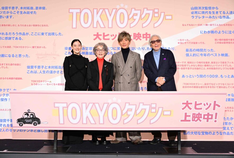 木村拓哉が12月3日、都内で行われた映画『TOKYOタクシー』の大ヒット御礼舞台挨拶に倍賞千恵子、蒼井優、山田洋次監督と参加した。