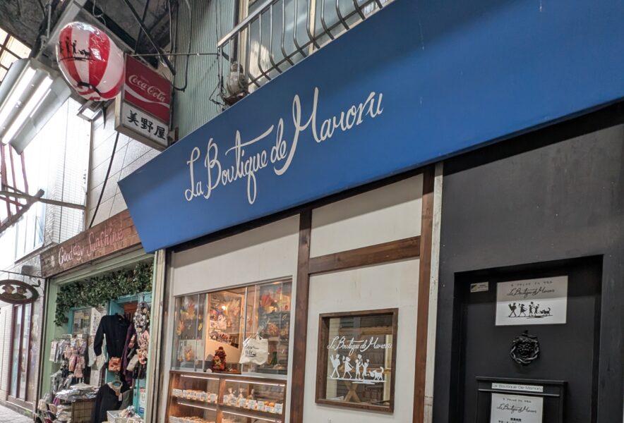 そんな昔ながらの景観の中でひときわ目を引くのが、鮮やかなブルーの看板が目印の『La Boutique de Mamoru』です。
