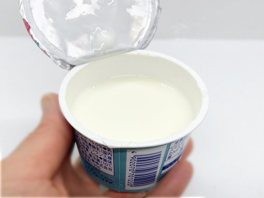 蓋を開けてみると、パッと見は普通のヨーグルトと変わりありませんね……。香りも、爽やかな酸味を感じるヨーグルトそのもの。