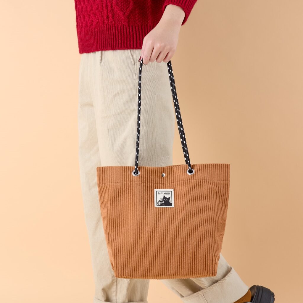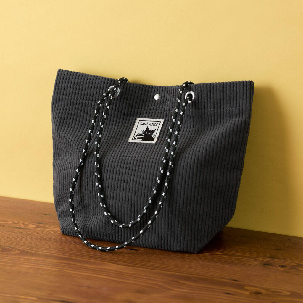 寒い季節のおうちカフェで活躍してくれるシリコン製マグカバーをはじめ、福袋ではめずらしい“美濃焼”のマグカップと小皿、さらに人気フードメニューの引換券がオリジナルバッグにまとめられた、全5アイテムのセットです。中でも注目は、カフェ・ベローチェの看板キャラクターである“黒ねこ”がデザインされたコーデュロイバッグ。約1年かけて企画・制作されたこだわりの品です。A4サイズのファイルがすっぽり入るサイズ感、深めのマチ設計で、見た目以上の収納力が実現されているのだとか!