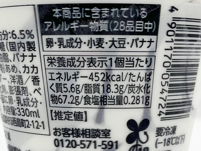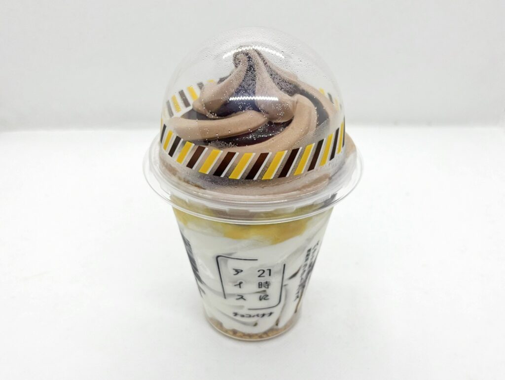 夜のリッチな締めアイスとして話題のアイスクリーム専門店「21時にアイス」。現在は全国に40店舗を展開しています。その「21時にアイス」とセブン-イレブンとのコラボが、12月23日(火)よりスタートしました。販売されるのは、お店で人気上位の味わいを表現した1個330mlのボリューム満点アイス『21時にアイス チョコバナナ』と『21時にアイス 紫芋モンブラン』です。そこで今回は『21時にアイス チョコバナナ』をいただいてみたいと思います。