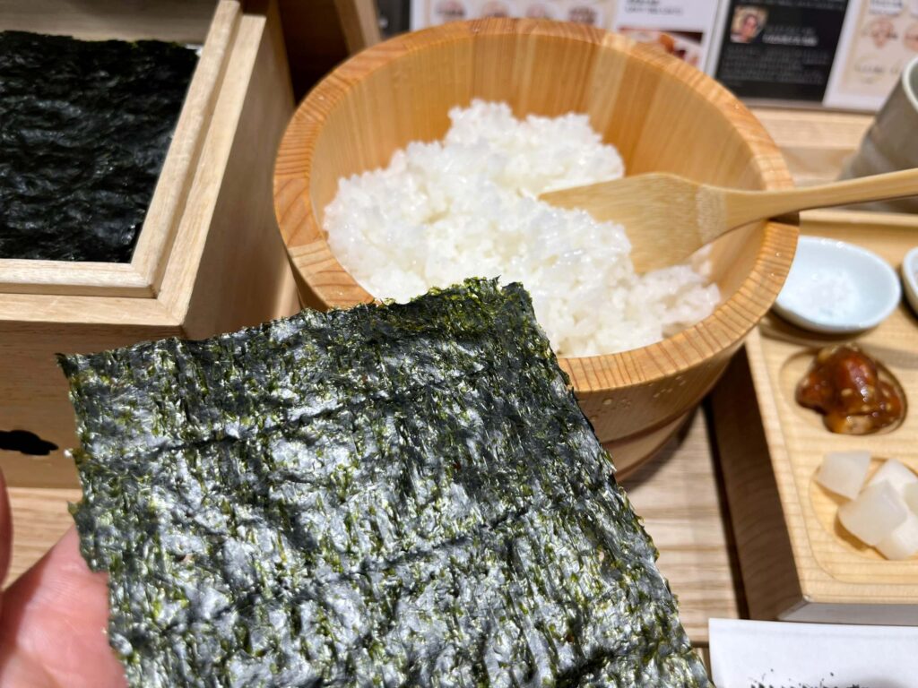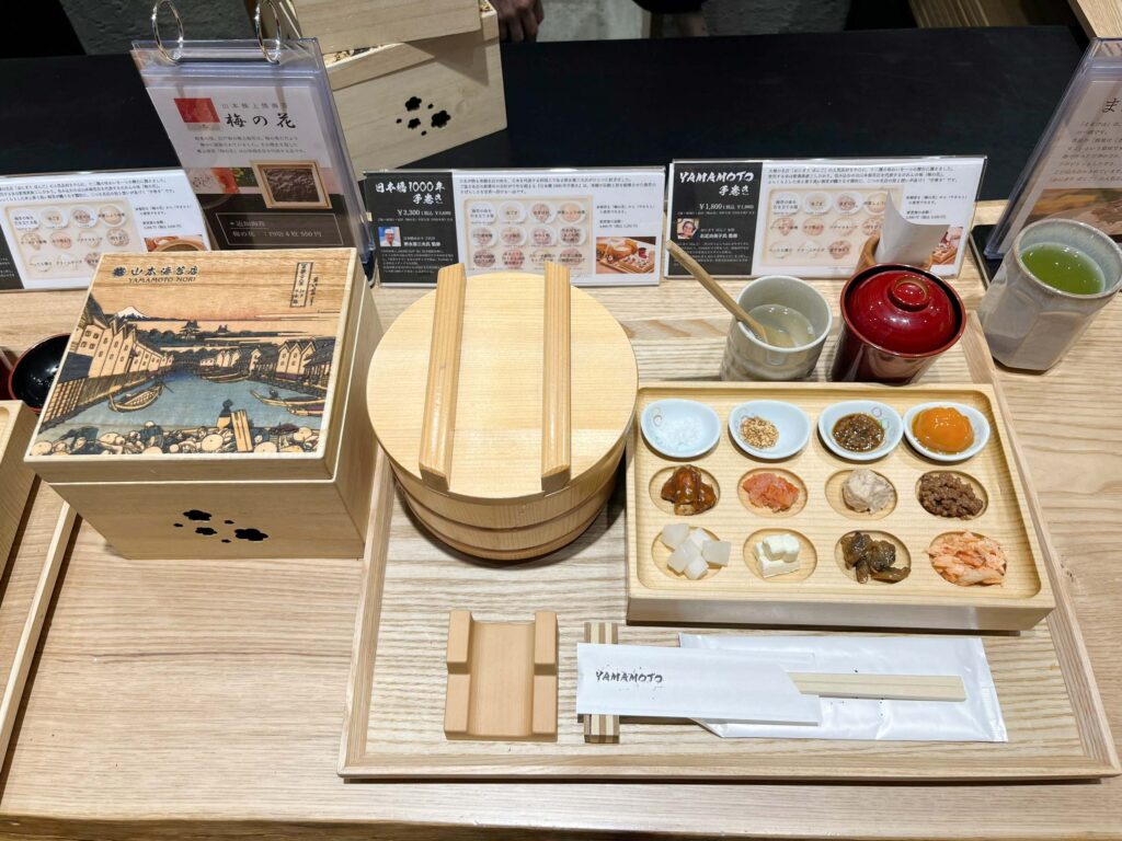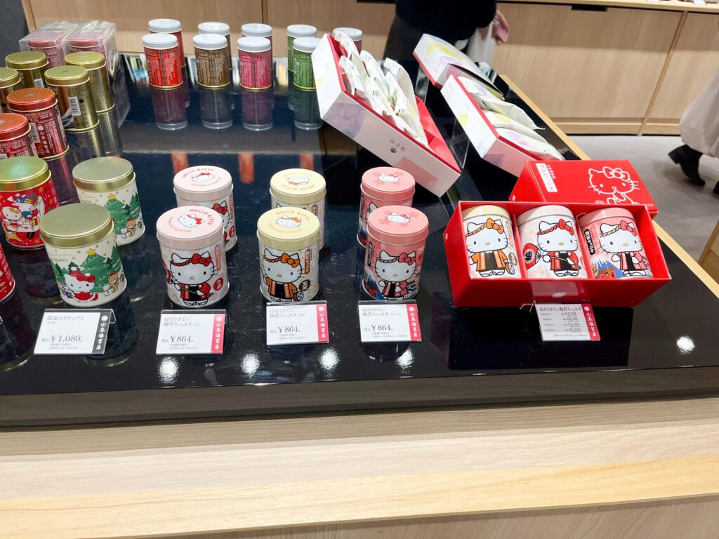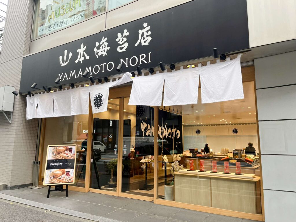 大満足で退店。「山本海苔店」の店内にあるので、使用されていた海苔をそこで購入することもできます。海苔だけでなく、海苔を使ったお菓子やキティちゃんコラボ商品などもあるので、お土産におすすめですよ。