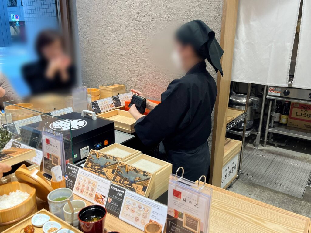 カウンター越しに店員さんが、1枚1枚丁寧に海苔の準備をしているのが見えます。