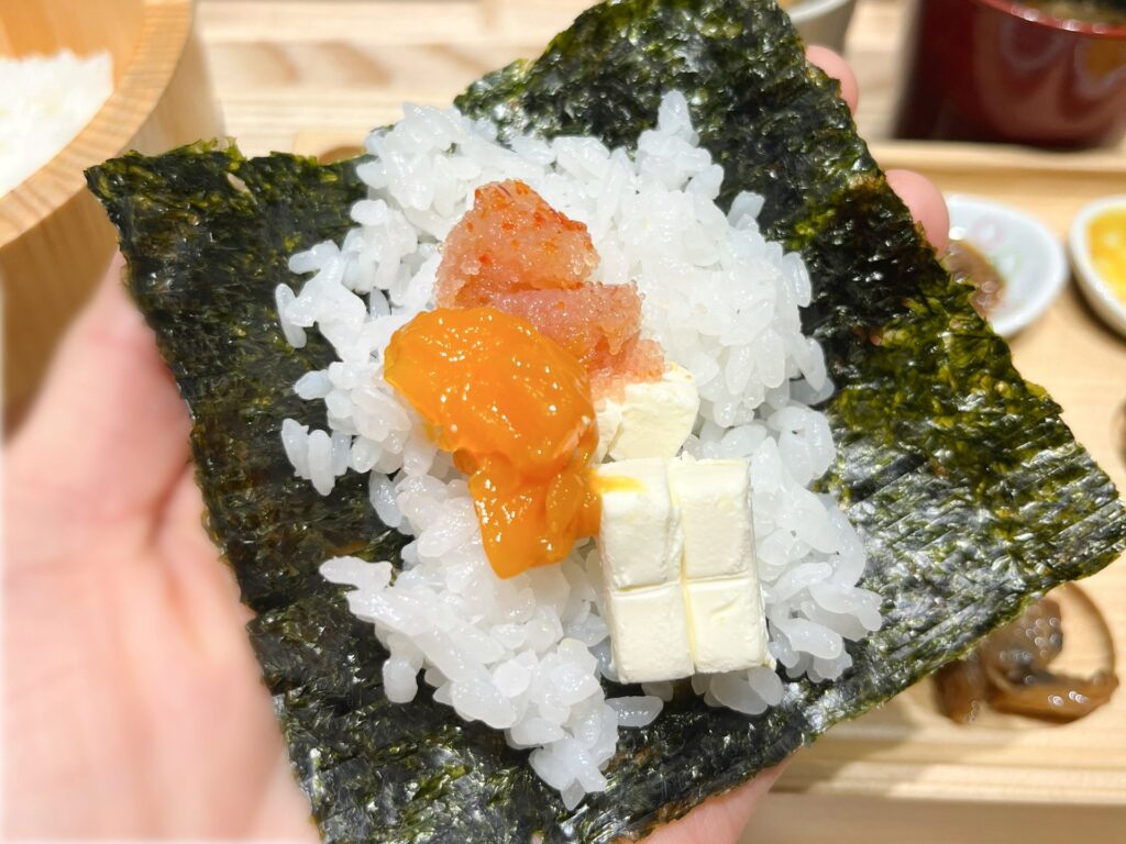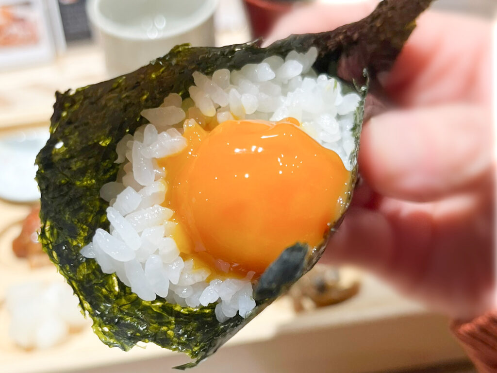 特に気に入ったのが、“卵黄しょうゆ漬”。濃厚でとろりとした卵黄に、醤油の甘みと塩味がしっかり絡んで、またその芳醇な旨みが海苔とご飯によく合うんです!
