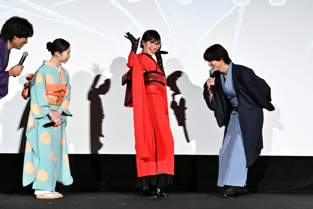 『マクロス』シリーズの河森正治による初のオリジナル劇場長編アニメーション映画『迷宮のしおり』が大ヒット公開中!1月5日には公開記念舞台挨拶がTOHOシネマズ日比谷にて実施され、声優を務めたSUZUKA(新しい学校のリーダーズ)、伊東蒼、寺西拓人(timelesz)、そして河森正治監督、さらに振付担当のMIOCHINが登壇した。