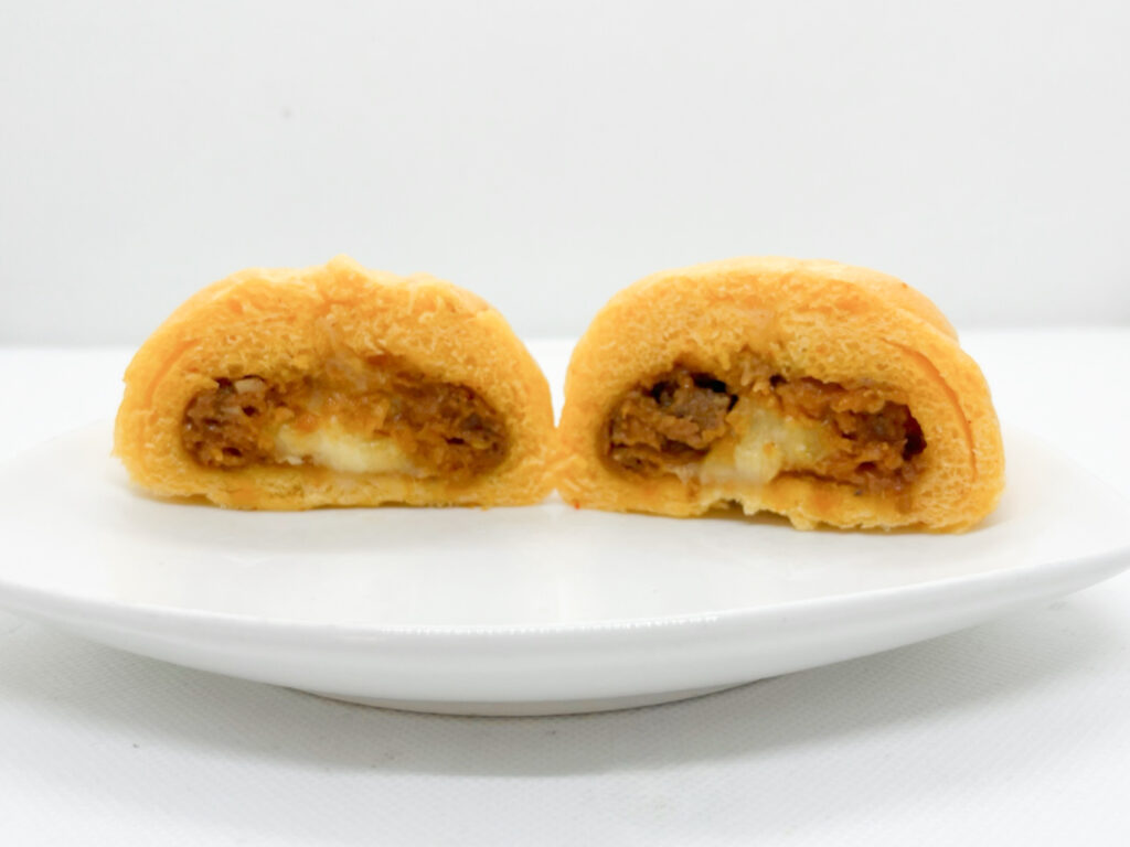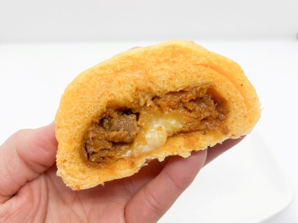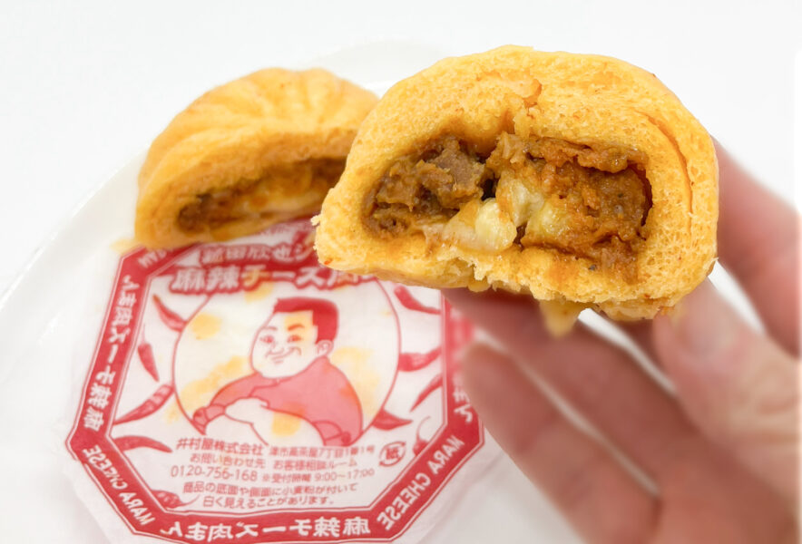 こちらが購入してきた『麻辣チーズ肉まん』(税込198円)。皮にも唐辛子が練りこまれていますね。