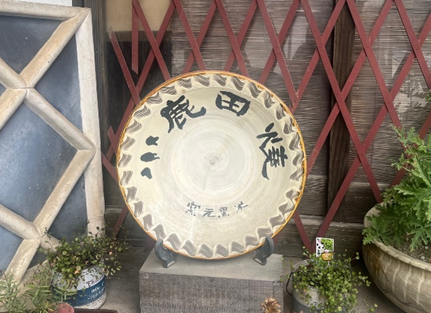 小鹿田焼きと書いて「おんたやき」と読みます。初見では読めませんよね。小鹿田焼の始まりは江戸時代から。三百年以上もの間、当時の技法を受け継いでいる窯です。代表的な技法のひとつが、ろくろを回しながら削り模様を付けていく「飛びかんな」。