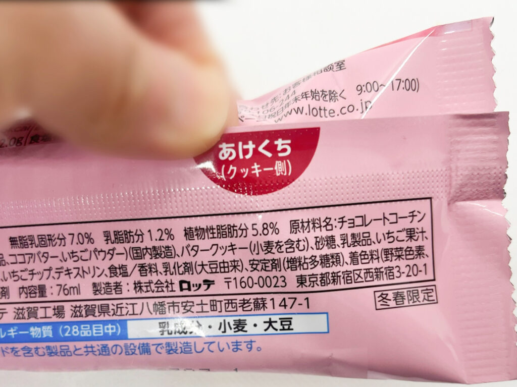 裏面には、開け口が二つ。チョコレート側からもクッキー側からも開けられるように工夫されています。