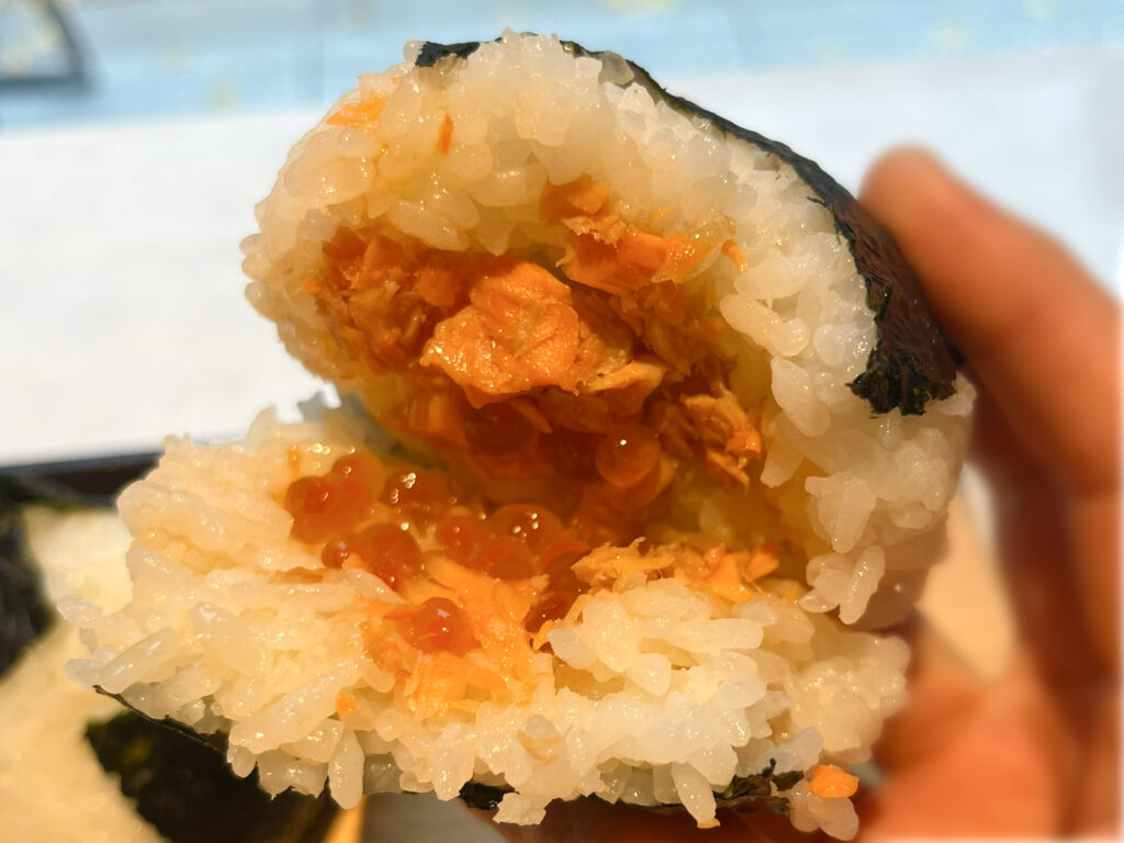 鮭といくらの風味が、お米の旨みと重なり合いとっても美味しい!海苔の味わいも奥深く、最高のバランスで食材が絡み合っていました。ボリューミーに感じましたが、全くそんなことはなく、ぺろりと食べられてしまいます。