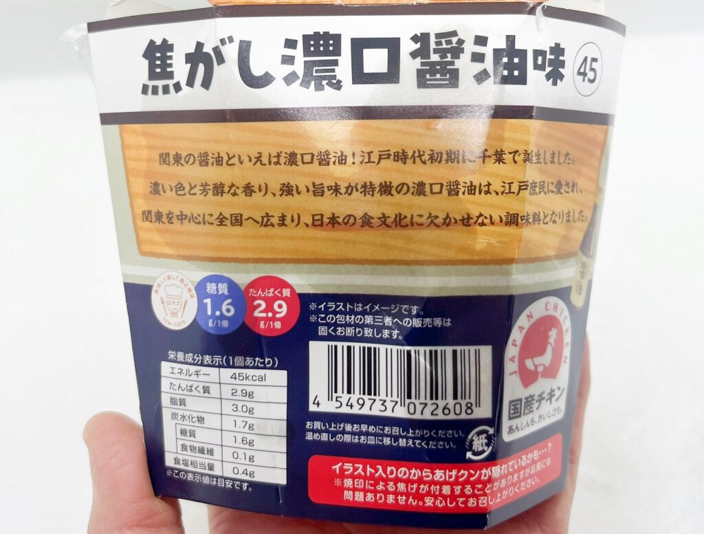 裏面には焦がし醤油味の解説付き。