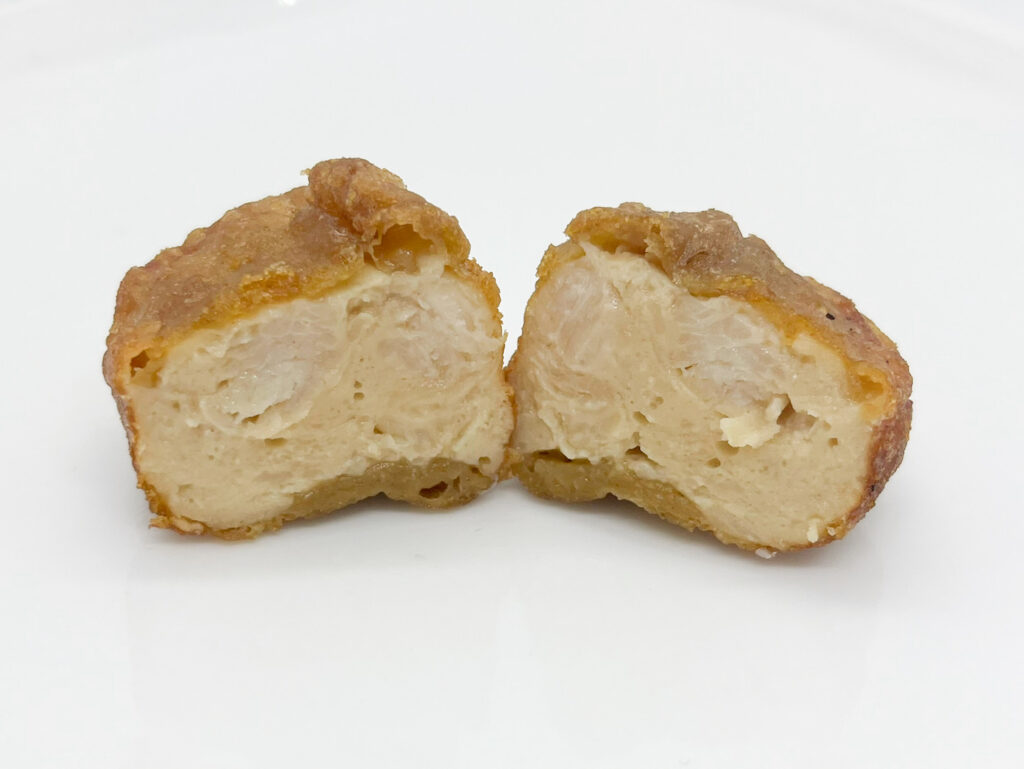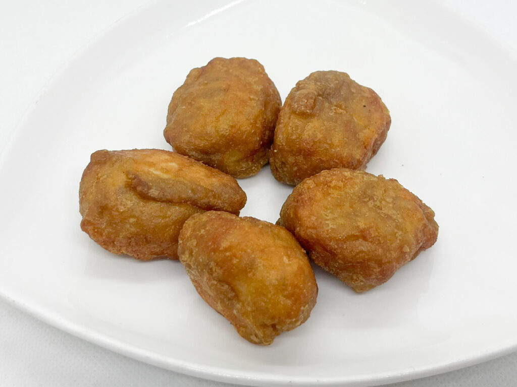 中身は、レギュラーのからあげくんより濃い目の色合いですね。個数はレギュラーと同じで、5個入っています。