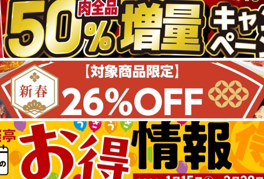2026年1月15日(木)~2月28日(土)までの期間限定で開催されるのは、無添加のお肉を手ごろな価格でいただける【安楽亭】の「お得フェア」。日々の気軽な外食はもちろん、家族や友人と囲む特別な焼肉のひとときまで、さまざまな場面で楽しめる嬉しい内容が揃っています。全3つのラインナップを簡単にご紹介!