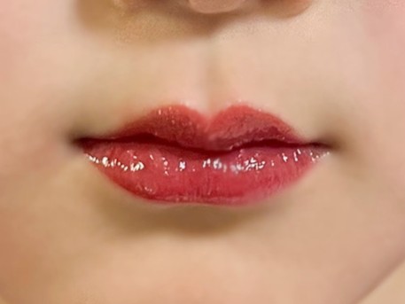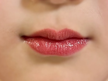 2時間ほど経った状態がこちら。まだまだ艶やかなツヤと発色をキープ。よく密着していて、保湿効果も感じました。