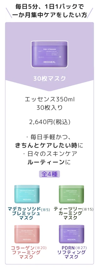 MEDIHEAL|1日5分で完了するデイリー保湿を叶える日本限定『30枚マスク』