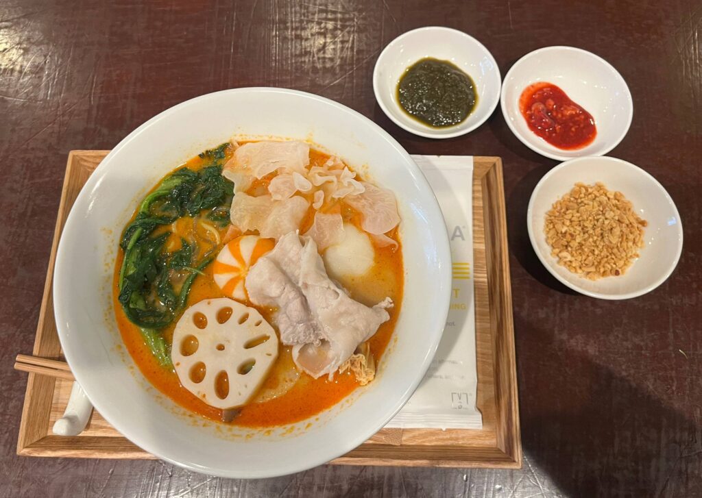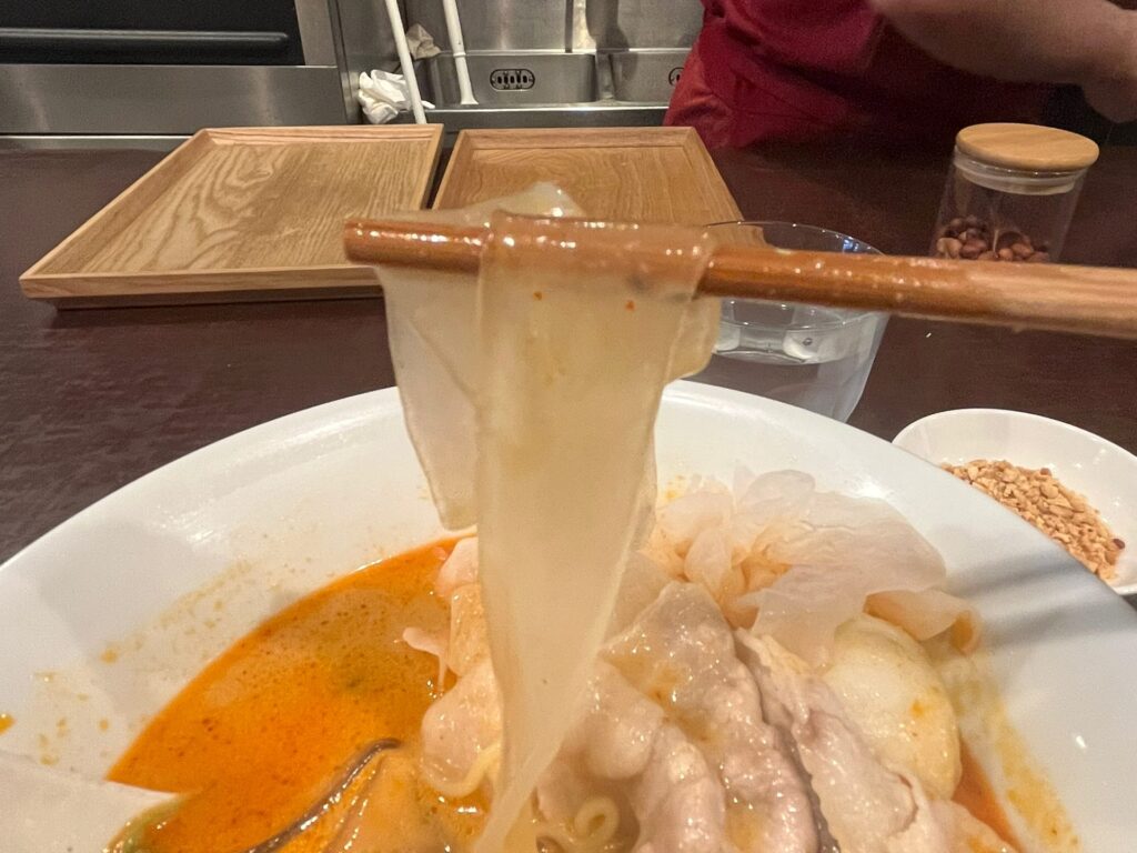 麺は“とうもろこし麺”と“板春雨”をミックス。辛さと痺れはどちらも2。さらに豚肉を追加して、この日のお会計は税込1,710円となりました。