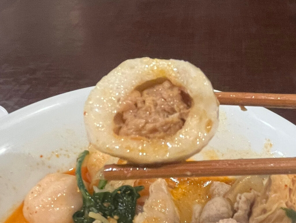 食材はどれもスープによく合って絶品だったのですが、その中でも特に気に入ったのが“肉団子”。かじると中から肉汁がジュワッと出てきてたまりません。