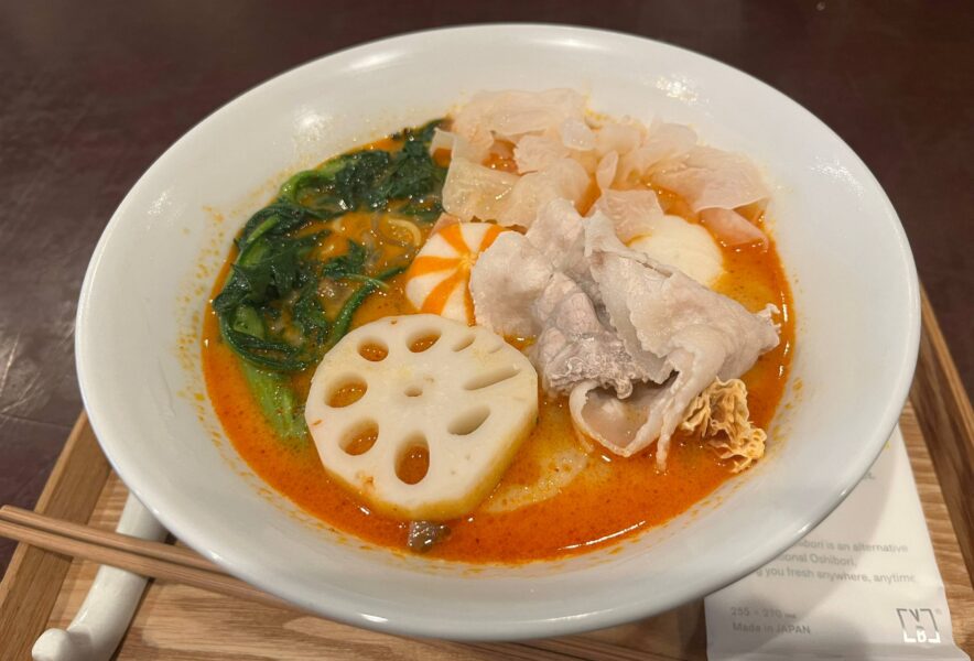 まずは、見るからに濃厚そうなスープからいただきます。ちょっとピリっとする辛さ、舌がビリビリする痺れ、鼻から抜けていく出汁の風味が美味しい!痺れ強めの辛さが好きな私としてはちょうどいい味わいになっていました。出汁は、国産の牛骨をベースに、豚骨や鶏がらを加えたスープ、さらに特製のゴマだれがコクをプラス。飲んだ瞬間に広がる奥深い旨みに驚いてしまいます。