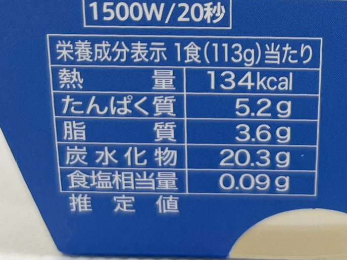 熱量は、1食当たり134キロカロリーです。