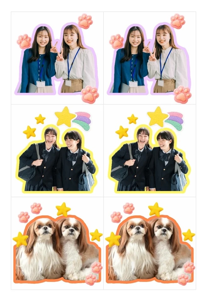 『コンビニシール倶楽部』は、スマホで作成したシールデータをコンビニのマルチコピー機で印刷できるサービス。 自宅にプリンターがなくても、気軽にオリジナルシールを作れるのが特徴です。新たに登場した「フレークシール機能」では、イラストや文字などの形に沿って1枚ずつカットされた、小さくて薄いデコレーションシール“フレークシール”を作成可能に。推しの写真やイラストを1枚のシートにまとめて配置し、フレークシールとして印刷もできちゃいます!