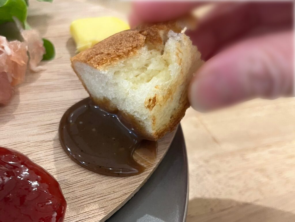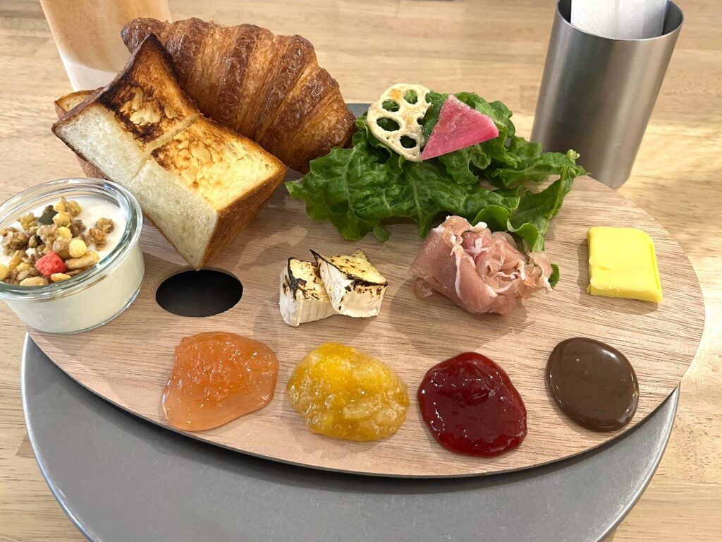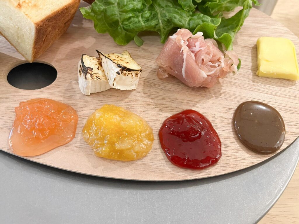 シンプルに素材の風味を堪能するも良し、ジャムの味わいに浸るも良し、ハムやチーズの旨みを重ねるも良し、まさにアートのように自由な楽しみ方ができる一品でした。