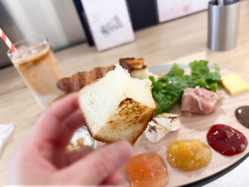 まずは、「パンとエスプレッソと」自慢の食パン“ムー”をそのまま。芳醇なバターと香ばしい小麦の風味が最高!