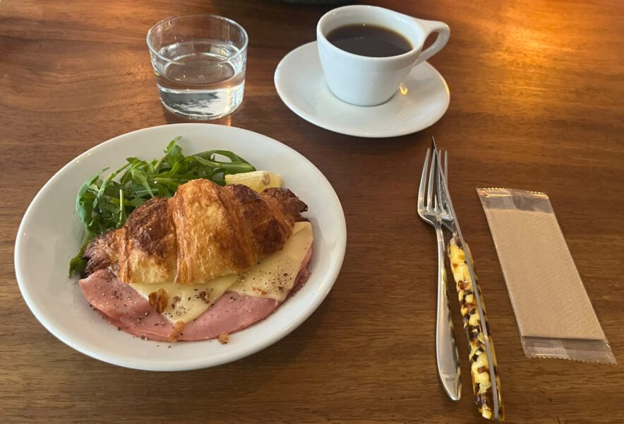 ハムは薄切りのものが層になっていて、食べ応えがあります。チーズがさらにクロワッサンの風味、ハムの旨みを引き出して美味しい!ナイフとフォークでいただきましたが、思い切りかじりついて、頬張りたくなりました。